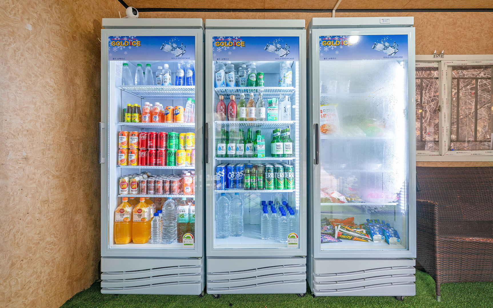간단한 간식과 필수품이 준비되어 있습니다.